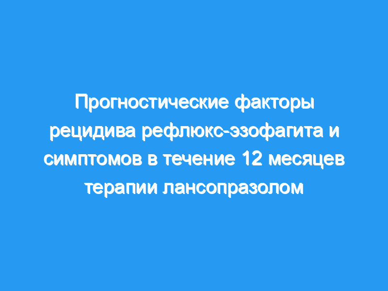 Доза лансопразола (P = 0,01) и тяжесть симптомов (P <, 0,05) достоверно предсказывали время до рецидива. Степень рефлюкс-эзофагита имела лишь пограничную прогностическую ценность (Р = 0,09), в то время как статус инфекции H. pylori и данные манометрии и внутрипищеводной 24-часовой рН-метрии не предсказывали рецидив.