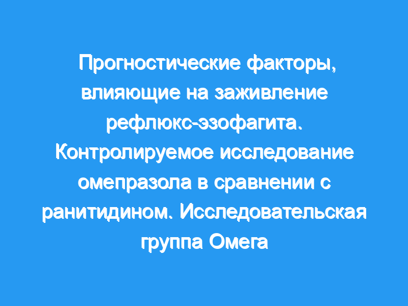 7 дней, p <, 0,001). Независимыми хорошими прогностическими факторами, связанными со скоростью заживления, были лечение омепразолом (p <, 0,001) и эзофагит 2-й степени (p <, 0,001), в то время как факторами, связанными с исчезновением симптомов, были низкий показатель ожога (p = 0,001), пожилой возраст (p = 0,004), лечение омепразолом (р = 0,005), отсутствие какой-либо профессии (р = 0,01) и мужской пол (р = 0,017). Результаты этого исследования показывают, что, помимо лечения, эндоскопические факторы являются прогностическими для излечения рефлюкс-эзофагита, леченного антисекреторными средствами, в то время как клинические факторы более важны в отношении исчезновения симптомов.