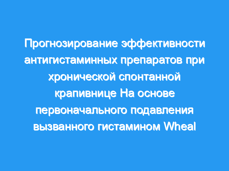 Измерение вызванного гистамином wheal может предсказать, у каких пациентов будет сильный клинический ответ на антигистаминные препараты, но имеет ограниченную полезность для выявления тех, кто не отвечает. Клиническая значимость этих данных может быть актуальна при поиске новых схем лечения крапивницы.< / p>