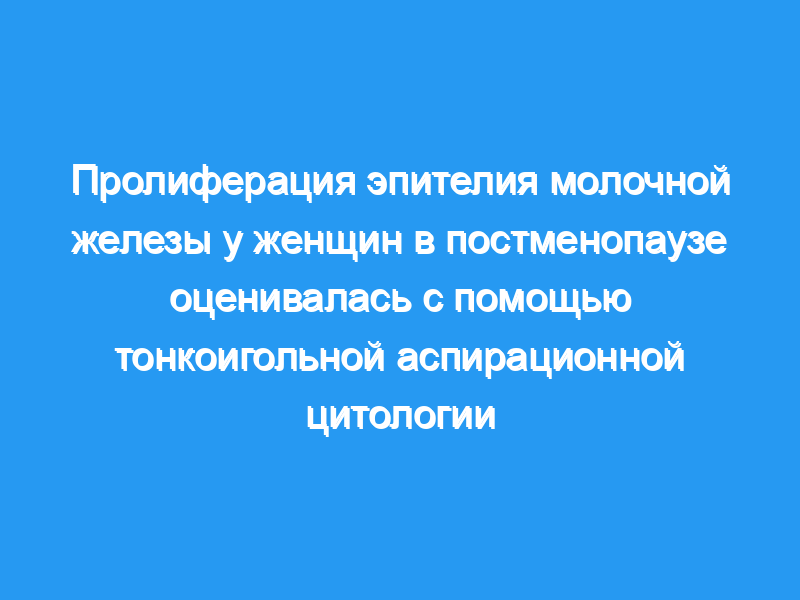 Мы пришли к выводу, что метод биопсии FNA применим для изучения пролиферации не только у молодых, обычно здоровых женщин, но и в молочной железе в постменопаузе.