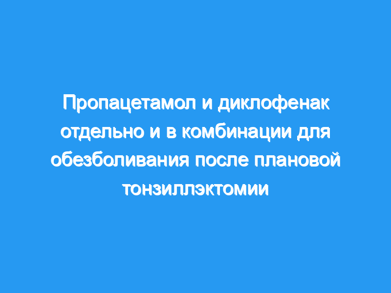 Комбинированное лечение пропацетамолом и диклофенаком в используемых дозировках дало клинически лишь незначительное преимущество по сравнению с монотерапией пропацетамолом или диклофенаком в отношении послеоперационной анальгезии или частоты побочных эффектов у взрослых пациентов, перенесших тонзиллэктомию.