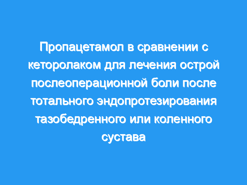 Мы оценили обезболивающую эффективность внутривенного введения пропацетамола и кеторолака в двойном слепом плацебо-контролируемом исследовании с участием пациентов, перенесших процедуру тотального эндопротезирования тазобедренного или коленного сустава.