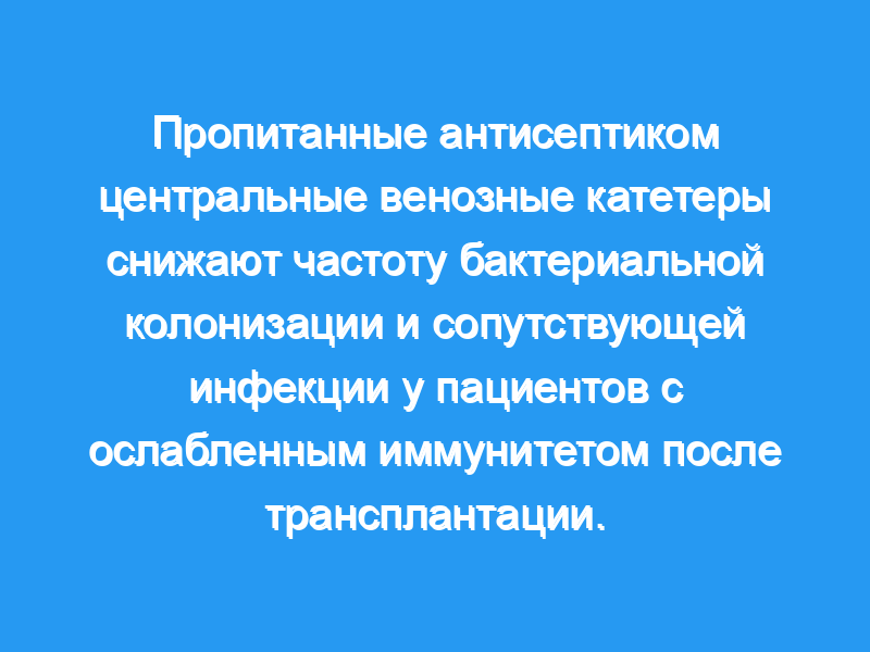 Частота бактериальной колонизации центральных венозных катетеров при использовании стандартного полиуретанового катетера сравнивалась с таковой при использовании катетера, пропитанного антисептиком (сульфадиазин серебра и хлоргексидин), в группе пациентов с трансплантацией органов грудной клетки.