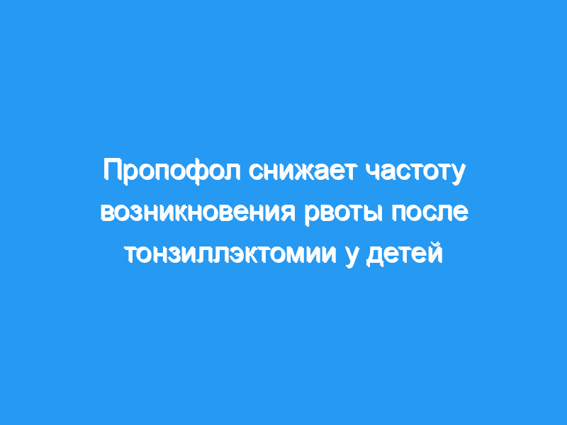 Мы сравнили влияние анестетика на основе пропофола и анестетика на основе изофлурана на частоту послеоперационной рвоты у детей после тонзиллэктомии.