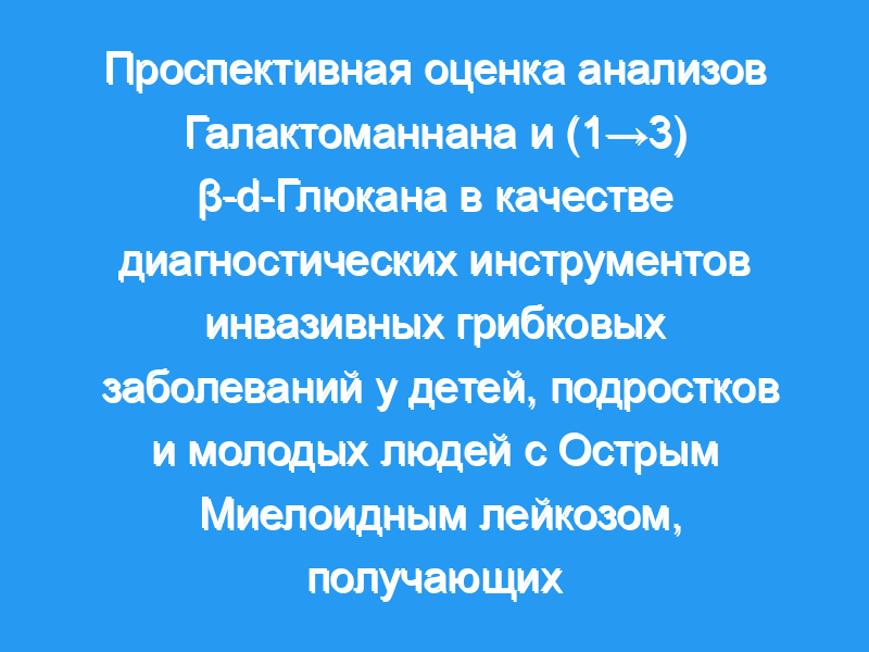 Пациенты, получающие химиотерапию по поводу острого миелоидного лейкоза (ОМЛ), подвергаются высокому риску инвазивного грибкового заболевания (ИФБ). Диагностика ИФД является сложной задачей, что вызывает интерес к грибковым биомаркерам. Цель состояла в том, чтобы определить полезность эпиднадзорного тестирования с использованием иммуноферментного анализа на галактоманнан (GM) Platelia Aspergillus (EIA) и анализа на β-d-глюкан Фунгителла (BDG) у детей с ОМЛ, получающих противогрибковую профилактику.