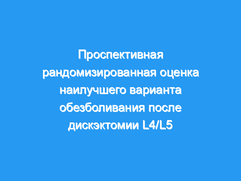 Введение обезболивающего с помощью контролируемого пациентом насоса способствует облегчению послеоперационной боли после операции по экструзии диска L4/L5 независимо от введенного анальгетика.