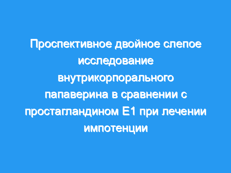 Было проведено рандомизированное проспективное двойное слепое клиническое исследование, в котором сравнивались внутрикорпоральные инъекции папаверина (30 мкг/мл) с простагландином Е1 (10 мкг/мл) в качестве фармакологического лечения импотенции.