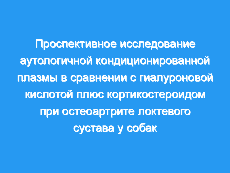 В этом проспективном рандомизированном двойном слепом исследовании сравнивались результаты у собак с двусторонним остеоартритом локтевого сустава (ОА), получавших гиалуронан плюс метилпреднизолон (HA + S) или аутологичную кондиционированную плазму (ACP(®), Arthrex). Исследователь, ослепленный лечением, оценил хромоту (0-4) до и через 6 месяцев после однократной инъекции либо HA + S, либо ACP. Клиенты были слепы к лечению и прошли валидированное обследование до и через 1, 6, 12 и 24 недели после инъекции.
