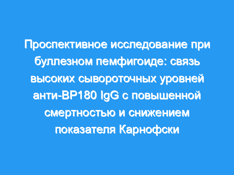 Активность заболевания коррелировала с уровнями иммуноглобулина (Ig)G против BP180, но не с уровнями анти-BP230 IgG и анти-BP180 IgE. Высокие уровни как анти-BP180 IgG, так и анти-BP230 IgG были связаны с низким показателем Карнофски. Наличие анти-BP230 IgG было более частым у пожилых пациентов. Те, у кого был более высокий уровень общего IgE в сыворотке крови, страдали от меньшего количества побочных эффектов. Более высокие уровни IgG анти-BP180 были связаны с увеличением смертности в течение 1 года.