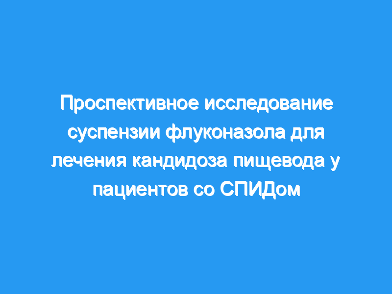 Кандидоз пищевода является наиболее частой причиной симптомов со стороны пищевода у пациентов со СПИДом. Противогрибковая терапия, назначаемая в виде суспензии, может переноситься лучше, чем капсулы или таблетки, у детей или пациентов с симптомами со стороны пищевода. Мы провели проспективное исследование безопасности и эффективности суспензии флуконазола.