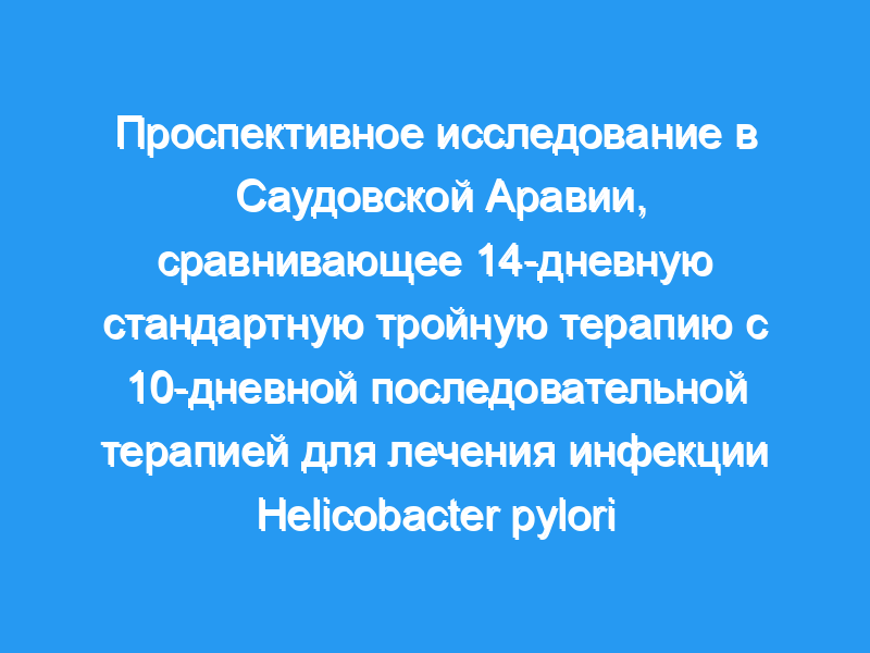 Успех лечения инфекции Helicobacter pylori в Саудовской Аравии относительно не изучен. В этом проспективном исследовании сравнивалась эффективность последовательной и стандартной тройной терапии при лечении инфекций H. pylori. Пациенты и методы: Подходящие пациенты прошли эндоскопию верхней части тела в одном центре в Саудовской Аравии с октября 2011 по февраль 2014 года. Пациенты, у которых был положительный результат теста на инфекцию H. pylori, были случайным образом распределены на последовательную терапию или стандартную тройную терапию. Последовательное лечение: Эзомепразол (20 мг бид в течение 10 дней), амоксициллин (1000 мг в течение 5 дней), затем кларитромицин 500 мг и тинидазол 500 мг, оба бид в течение 5 дней. Стандартная тройная терапия: эзомепразол 20 мг, кларитромицин 500 мг и амоксициллин 1000 мг каждый раз в течение 14 дней. После 6 недель лечения пациенты были проверены на излечение с помощью валидированного дыхательного теста на мочевину. Применение электронного теста определяло чувствительность H. pylori к различным антибиотикам.