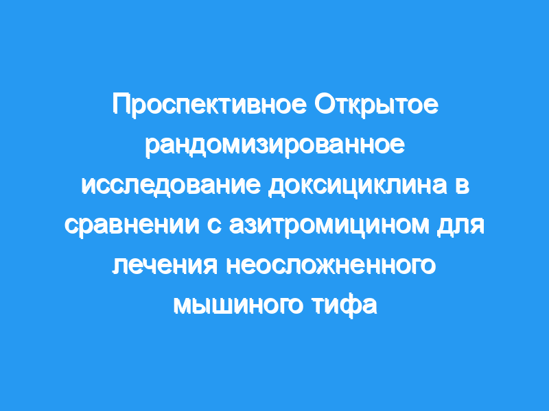 В 2 больницах Вьентьяна, Лаос, было проведено проспективное открытое рандомизированное исследование на небеременных, согласившихся на стационарное лечение взрослых с экспресс-диагностическим тестом, подтверждающим неосложненный мышиный тиф. Пациенты были рандомизированы на 7 дней (D7) или 3 дня (D3) перорального приема доксициклина или 3 дня перорального приема азитромицина (A3). Основными показателями результатов были время купирования лихорадки и частота неудач лечения и рецидивов.
