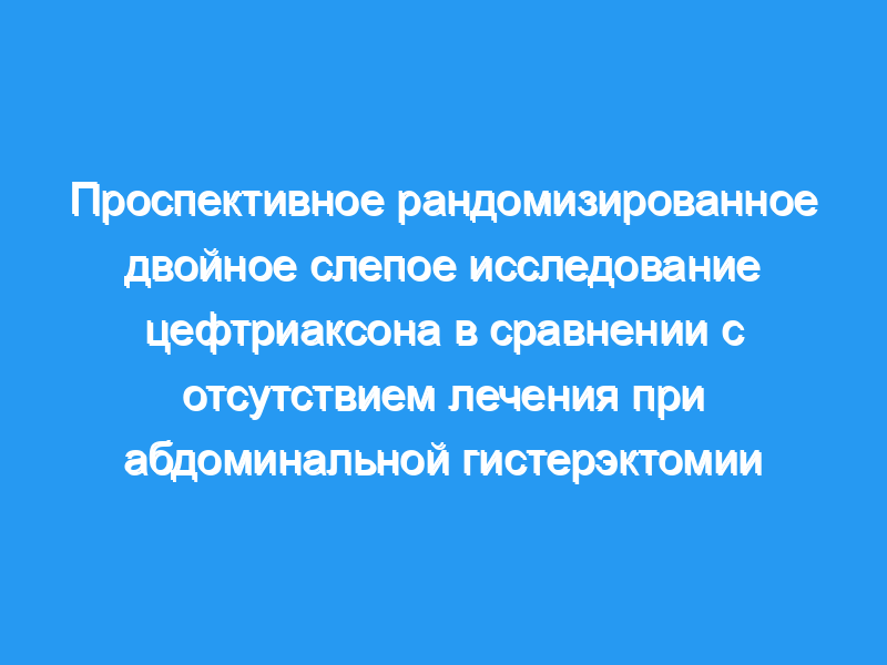 Ценность предоперационного профилактического парентерального лечения цефтриаксоном при плановой абдоминальной гистерэктомии была исследована в проспективном рандомизированном двойном слепом исследовании, в котором приняли участие 157 женщин, 77 в группе антибиотиков и 80 в контрольной группе.