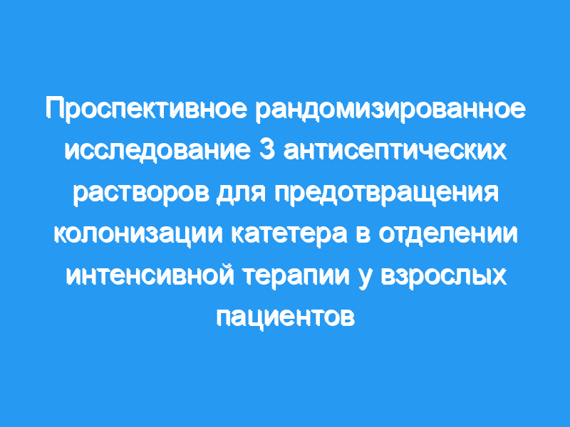 Сравнить эффективность для предотвращения колонизации центральных венозных и артериальных катетеров 3-х кожных антисептиков 1 из 3 растворов антисептиков: 10%-ный водный раствор повидон-йода (водный PI), 2%-ный водный раствор хлоргексидина глюконата (водный CG) и 0,5%-ный спиртовой хлоргексидин глюконат (спиртовой CG). Дизайн: Проспективное рандомизированное контролируемое исследование.