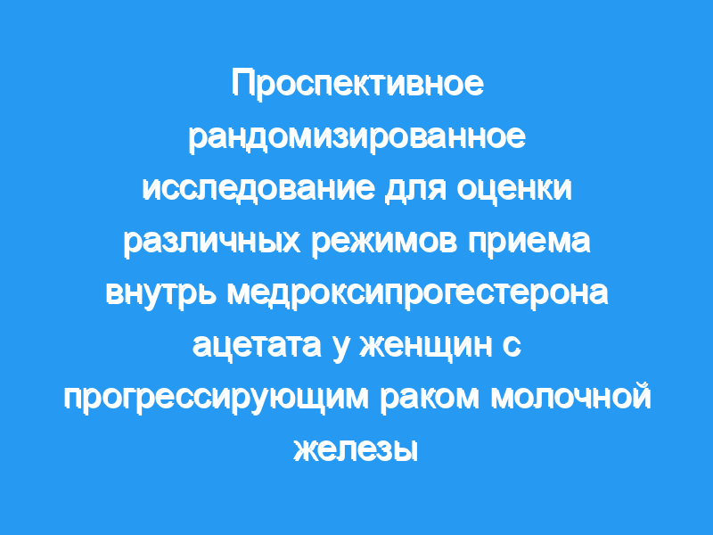 Было проведено проспективное рандомизированное исследование, чтобы попытаться ответить на два вопроса: превосходит ли нагрузочная доза медроксипрогестерона ацетата (1000 мг в день в течение 48 ч) традиционную дозировку и обеспечивает ли пероральная поддерживающая доза 1000 мг в день какие-либо преимущества. преимущество более 500 мг в день у женщин с запущенным раком молочной железы, которые не реагировали на тамоксифен или у которых после него случился рецидив? Из 211 рандомизированных пациентов 207 были оценены.