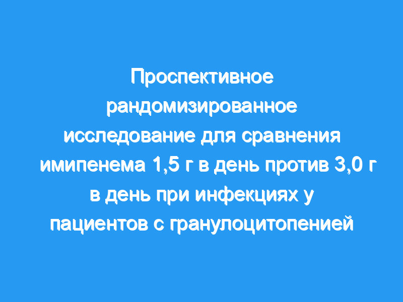 Целью представленного проспективного рандомизированного исследования было сравнение эффективности эмпирической противомикробной монотерапии имипенемом 3 х 0,5 г в день и 3 х 1,0 г в день для лечения инфекций у пациентов с нейтропенией.