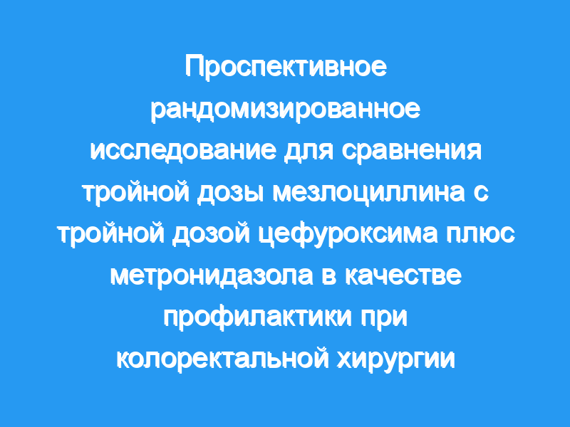 Представлены результаты проспективного рандомизированного клинического исследования по сравнению трех режимов дозирования мезлоциллина с цефуроксимом плюс метронидазолом для профилактики при экстренной и плановой колоректальной хирургии.