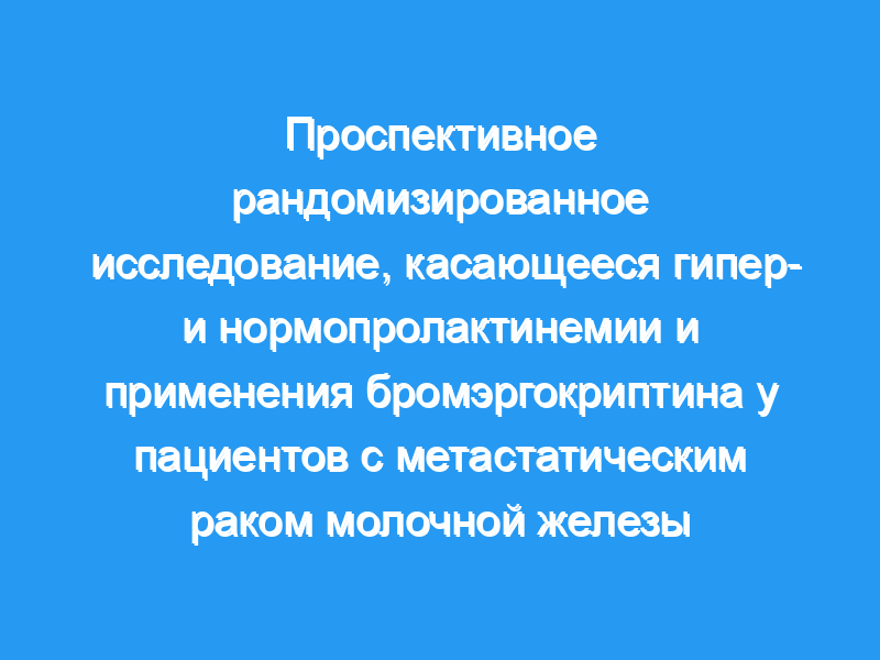 Это проспективное исследование было разработано, чтобы помочь в выборе терапии для пациентов с повышенным и нормальным уровнем пролактина в плазме.