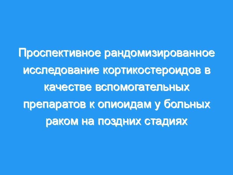 В этом рандомизированном контролируемом исследовании оценивалась роль кортикостероидов в качестве вспомогательных средств к опиоидной терапии у 76 больных раком на поздней стадии с болью, которым требовались сильные опиоиды.