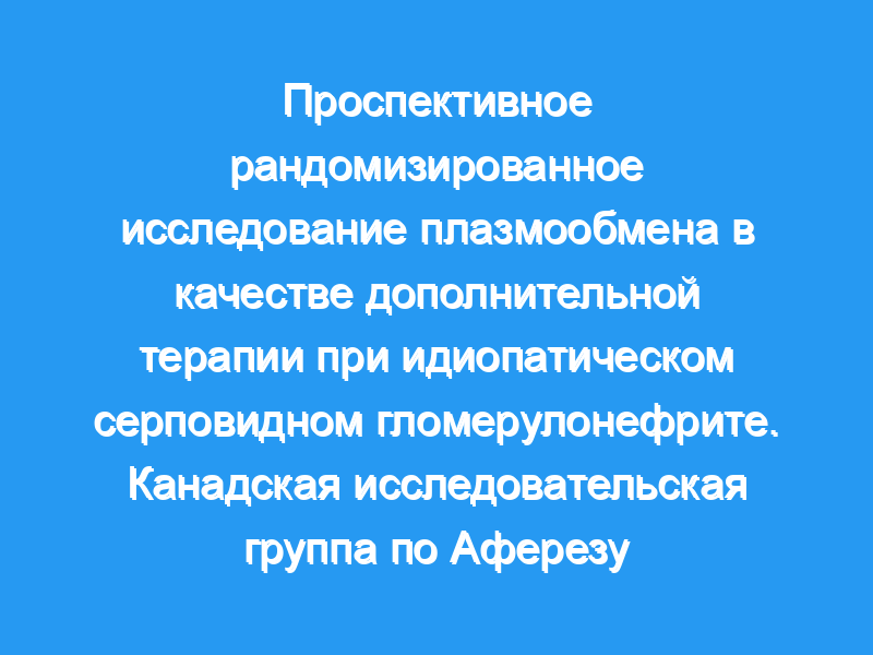 Мы пришли к выводу, что плазмообмен не дает дополнительной терапевтической пользы пациентам с идиопатическим быстро прогрессирующим гломерулонефритом (РПГН), которые не зависят от диализа при его проявлении.