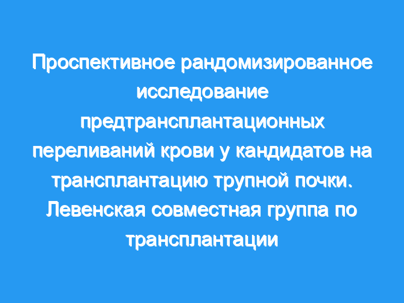 Настоящее исследование указывает на то, что предтрансплантационные переливания крови по-прежнему способствуют приживлению трансплантата даже при условии хорошего соответствия HLA и при использовании циклоспорина в качестве основного иммунодепрессанта.
