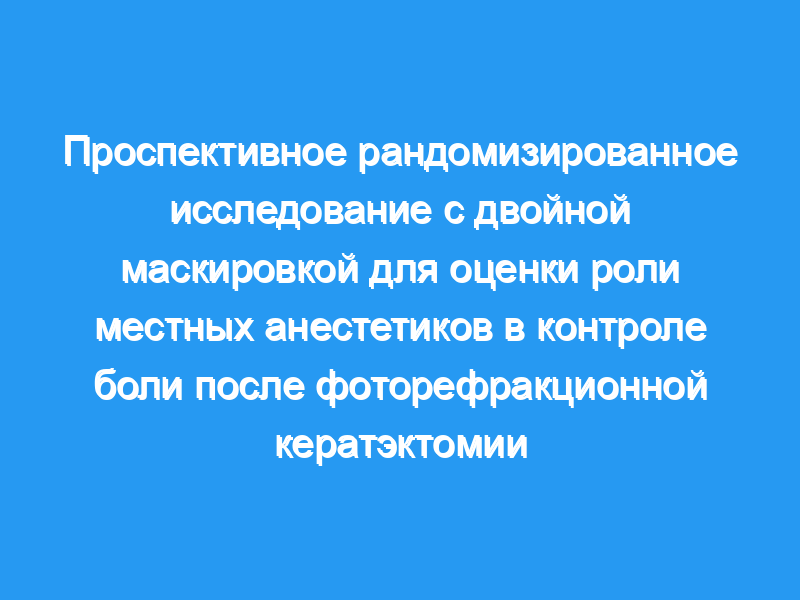 В этом исследовании 44 пациента были рандомизированы для получения либо Gutt. 1% тетракаина или плацебо после прохождения ФРК. Капли закапывали с 30-минутными интервалами в часы бодрствования в течение 24 часов после операции. Кроме того, все пациенты получали по две таблетки копроксамола (парацетамол + декстропропоксифен) каждые 6 часов в течение 2 дней. Визуальные аналоговые диаграммы боли использовались для регистрации уровня боли в течение 4 дней после операции. Для оценки скорости заживления эпителия использовалась серийная оцифрованная фотосъемка с ретроосвещением, а качество поверхностного эпителия контролировалось с помощью топографии. С фиксированными интервалами в течение 6-месячного периода оценивались показатели зрения путем измерения показателя рефракции, остроты зрения с наилучшей коррекцией, помутнения объектива, ореола и бликов.