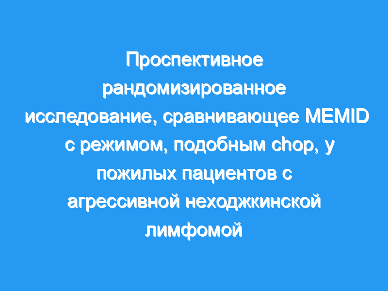 В этом многоцентровом исследовании III фазы сравнивался режим MEMID (митоксантрон, VP16, метилглиоксаль, ифосфамид и дексаметазон) с CEOP, режимом, подобным CHOP (циклофосфамид, эпирубицин, винкристин и преднизолон), у пожилых пациентов (>, or =65 лет) с агрессивной неходжкинской лимфомой (НХЛ).