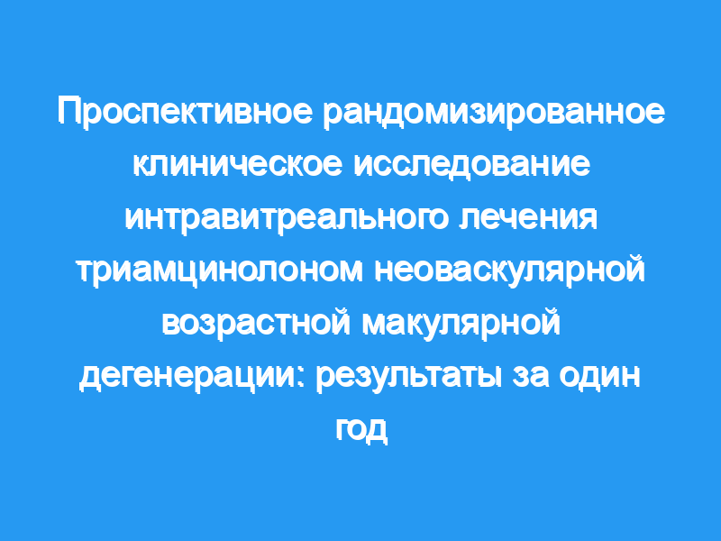 Проспективное плацебо-контролируемое рандомизированное клиническое исследование с двойной маскировкой включало 39 глаз с минимально классическим или скрытым CNV, вторичным по отношению к AMD. Группа лечения (21 глаз) получала интравитреальную инъекцию (20-25 мг) ацетонида триамцинолона, а контрольная группа (18 глаз) получала интравитреальную инъекцию (500 мг) дексаметазона с интервалом в 6 месяцев. Оценка ETDRS с наилучшей коррекцией (Исследование диабетической ретинопатии на ранних стадиях лечения), оценка контрастной чувствительности и центральный макулярный объем были измерены через 1 месяц, 3 месяца, 6 месяцев и 12 месяцев.