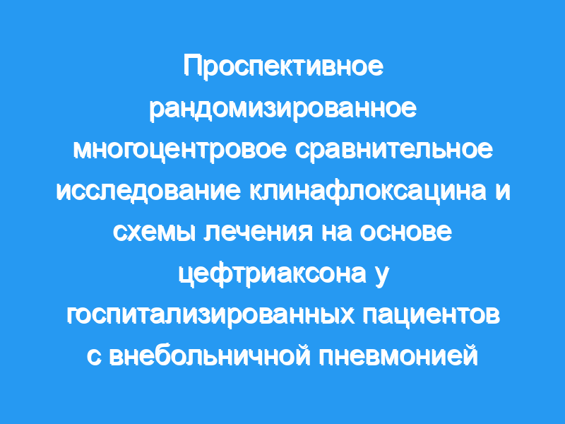 Оба препарата были переносимыми.Лечение госпитализированных пациентов с CAP клинафлоксацином является разумным выбором, особенно когда ожидается наличие резистентного патогена.