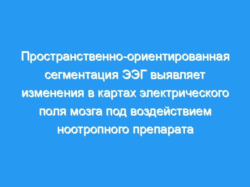 Ландшафтная сегментация последовательностей карт мгновенного распределения потенциала (42-канальные записи) в микросостояниях мозга во время спонтанной активности мозга использовалась для изучения пространственных эффектов электрического поля мозга от однократных доз пирацетама (2,9, 4,8 и 9,6 г ноотропила UCB и плацебо) в двойном исследовании.слепое исследование пяти нормальных молодых добровольцев.