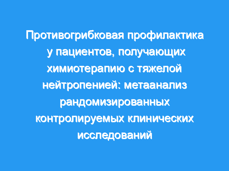Рандомизированные контролируемые испытания азолов (флуконазола, итраконазола, кетоконазола и миконазола) или внутривенных препаратов амфотерицина В по сравнению с плацебо/отсутствием лечения или контролем на основе полиенов у пациентов, получавших химиотерапию с тяжелой нейтропенией, оценивались с использованием метааналитических методов.