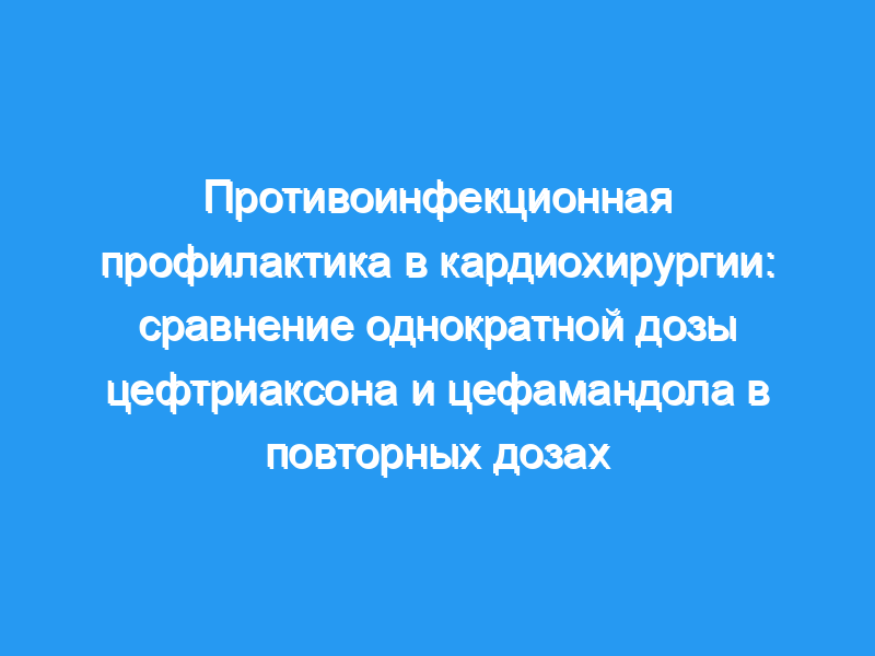 Оценивали эффективность однократного двухграммового болюса цефтриаксона при операциях на сердце по сравнению с классической многократной антибиотикопрофилактикой с использованием цефамандола.