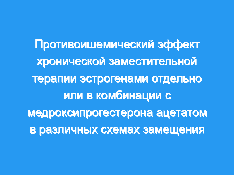 Заместительная терапия эстрогенами у женщин в постменопаузе оказывает защитное действие на сердечно-сосудистую систему и улучшает ишемию миокарда, вызванную физической нагрузкой. Хотя в схемах заместительной гормональной терапии прогестины требуются для снижения вероятности злокачественных новообразований матки, мало что известно о сердечно-сосудистом действии прогестинов. Целью этого исследования была оценка влияния только заместительной терапии эстрогенами и двух различных схем заместительной терапии эстрогенами и прогестинами на ишемию миокарда, вызванную физической нагрузкой. Материал и способ: В исследование были включены 18 пациенток в менопаузе с ишемической болезнью сердца. После базового теста с физической нагрузкой пациенты получали конъюгированные лошадиные эстрогены (CEE) в дозе 0,625 мг в течение 30 дней, когда они проходили повторный тест с физической нагрузкой, и были рандомизированы для получения в перекрестной схеме медроксипрогестерона ацетата (MPA) либо в непрерывной комбинированной терапии (2,5 мг / сут) в течение 28 дней, либо в циклической терапии (10 мг внутривенно с 16-го по 28-й день).