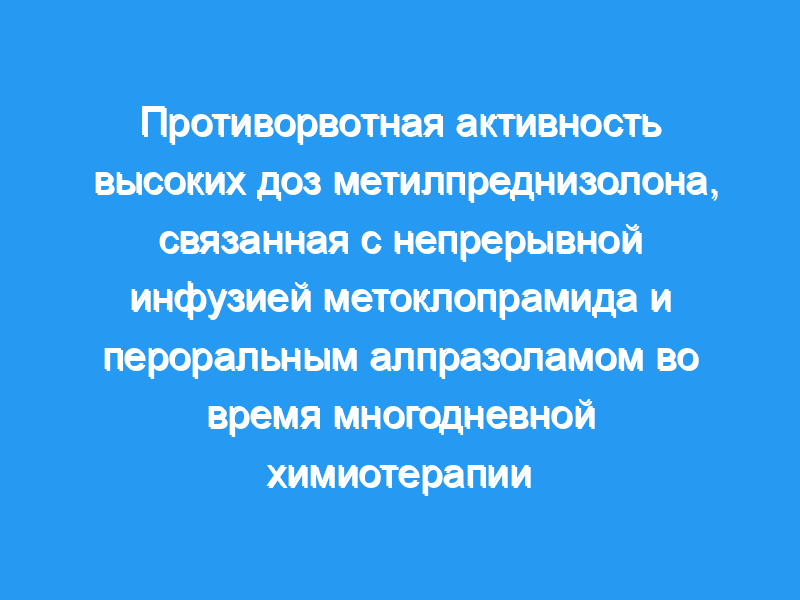 Мы пришли к выводу, что высокие дозы метилпреднизолона могут повысить эффективность метоклопрамида и алпразолама в борьбе с тошнотой и рвотой, вызванными многодневной химиотерапией, содержащей антрациклин, у пациентов с острым миелобластный лейкоз.