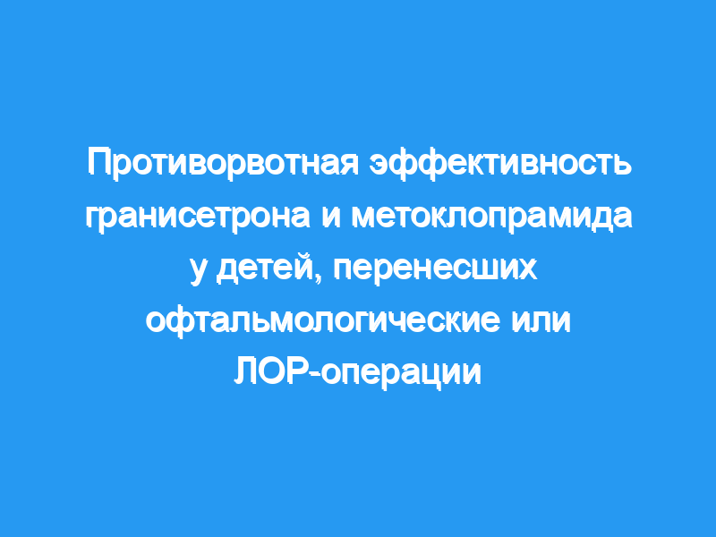 Гранисетрон 40 мкг/кг-1 более эффективен, чем метоклопрамид или плацебо, в снижении частоты послеоперационных позывов на рвоту и рвоту в течение первых 24 ч после анестезии у детей, перенесших хирургия косоглазия и тонзиллэктомия с аденоидэктомией или без нее.