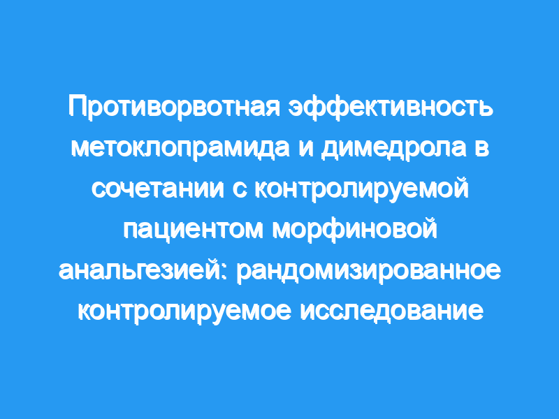 результаты этого исследования показали, что комбинация метоклопрамида с димедролом у пациентов, получавших дексаметазон при индукции анестезии, уменьшала послеоперационную тошноту и рвоту по сравнению с метоклопрамидом или димедролом у этих пациентов при добавлении к контролируемой пациентом анестезии морфином.