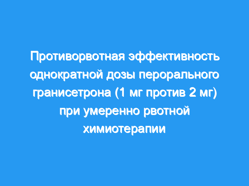 Результаты этого исследования демонстрируют хороший контроль рвоты при однократном приеме гранисетрона внутрь в дозе 1 мг, эффективность которого выгодно отличается от эффективности приема в дозе 2 мг.