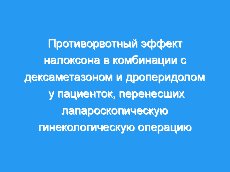 Комбинация налоксона, дроперидола и дексаметазона была эффективной для профилактики PONV у пациентов, получавших фентанил для послеоперационной анальгезии после лапароскопической гинекологической операции, хотя необходимы дальнейшие исследования для изучения эффекта добавления налоксона к другим противорвотным средствам.