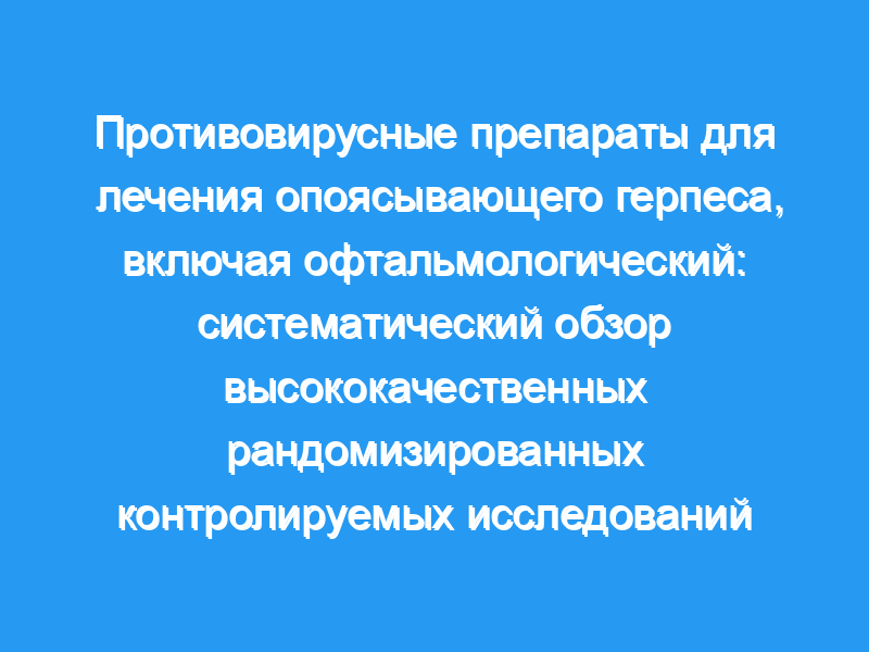 В рандомизированных контролируемых исследованиях отсутствует консенсус относительно эффективности противовирусных препаратов при лечении опоясывающего герпеса. Поэтому был проведен систематический обзор и мета-анализ, чтобы обеспечить лучшее понимание эффективности противовирусных препаратов в лечении опоясывающего герпеса.