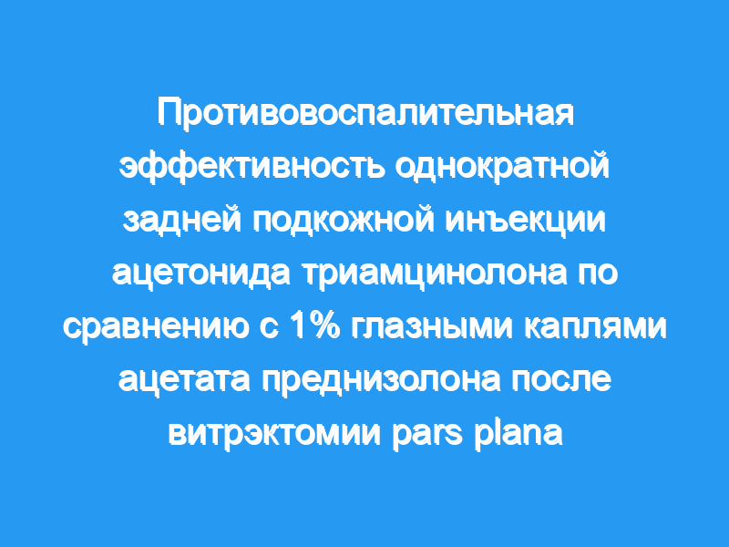 Однократная задняя инъекция ТА может быть столь же эффективной и безопасной, как 4-недельный режим 1% глазных капель ацетата преднизолона в контроле внутриглазного воспаления после PPV.
