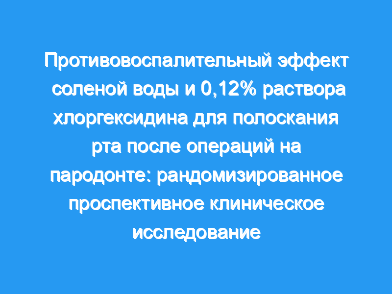 Использование полоскания рта хлоридом натрия после пародонтальной хирургии, по-видимому, оказывает аналогичное анти-обладает противовоспалительными свойствами в качестве ополаскивателя для рта CHX и может регулярно использоваться в послеоперационном периоде после хирургических вмешательств на пародонте. Клиническая значимость: Использование жидкости для полоскания рта с соленой водой показало противовоспалительный эффект, аналогичный CHX 0,12% после минимально инвазивной пародонтальной хирургии. Жидкость для полоскания рта с соленой водой доступна населению всего мира и может способствовать процессу заживления после операций на пародонте.