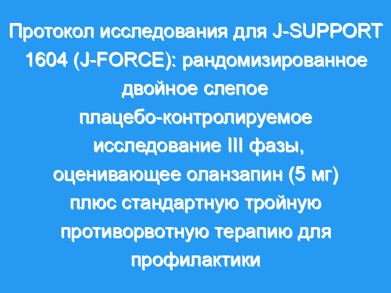 Поэтому мы провели рандомизированное двойное слепое плацебо-контролируемое исследование III фазы для оценки эффективности оланзапина (5 мг) в сочетании со стандартной тройной противорвотной терапией для высокоэметогенной химиотерапии на основе цисплатина.