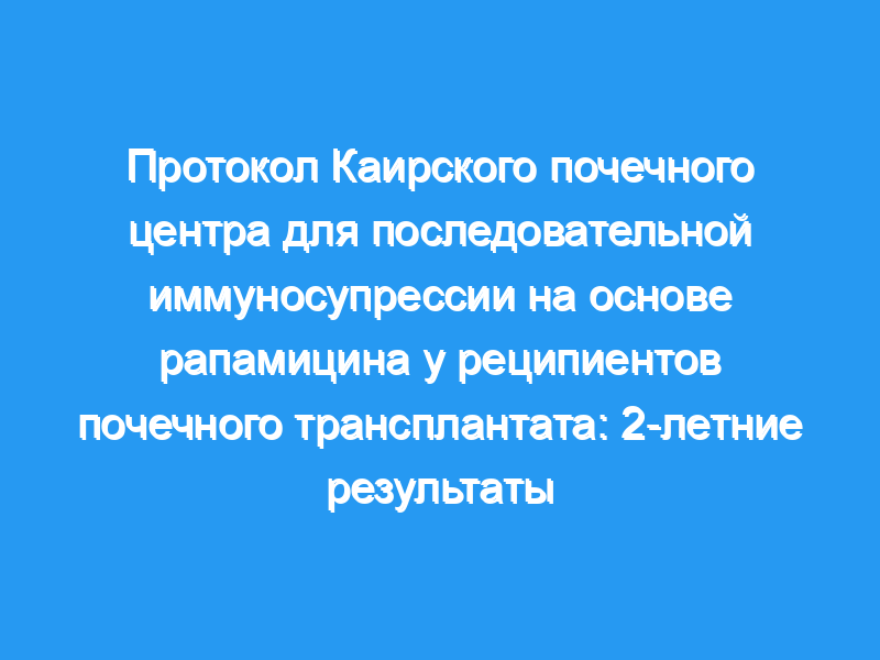 Описанный протокол снизил частоту подтвержденного биопсией острого отторжения у пациентов после трансплантации почки, особенно у пациентов с адекватным уровнем циклоспорина в крови. Несмотря на значительно более высокую частоту некоторых побочных эффектов (например, задержка функции трансплантата, протеинурия, гиперлипидемия и транзиторная тромбоцитопения), показатели выживаемости пациентов и трансплантата через 2 года были численно, хотя и не статистически, улучшены у пациентов в группе А. При 2-летнем анализе по сравнению с пациентами в контрольной группе (рука В), функция трансплантата значительно улучшилась у пациентов в руке А, а количество лекарств, необходимых для контроля артериального давления, было значительно ниже.