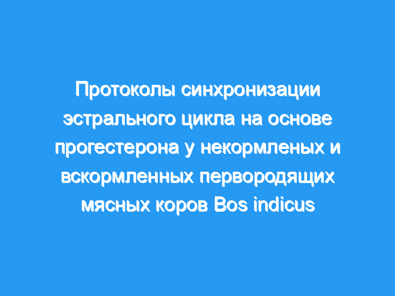 В эксперименте 1 оценивали влияние интравагинальной прогестероновой вставки (CIDR) на синхронизацию течки у некормленых циклических первородящих мясных коров Bos indicus.