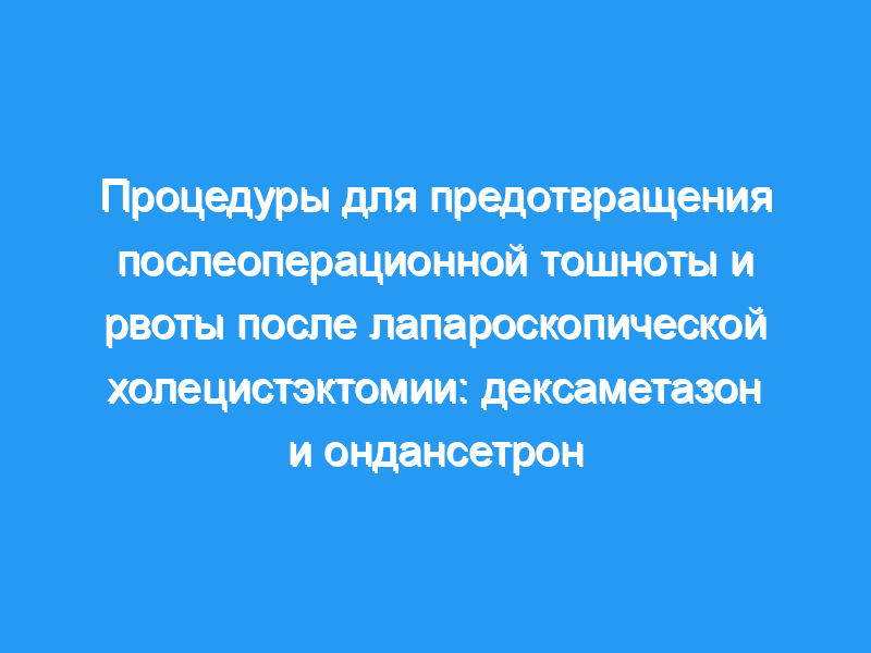 Это рандомизированное двойное слепое исследование было проведено для оценки эффективности ондасетрона и дексаматезона в снижении частоты послеоперационной тошноты и рвоты после лапароскопической холецистэктомии.