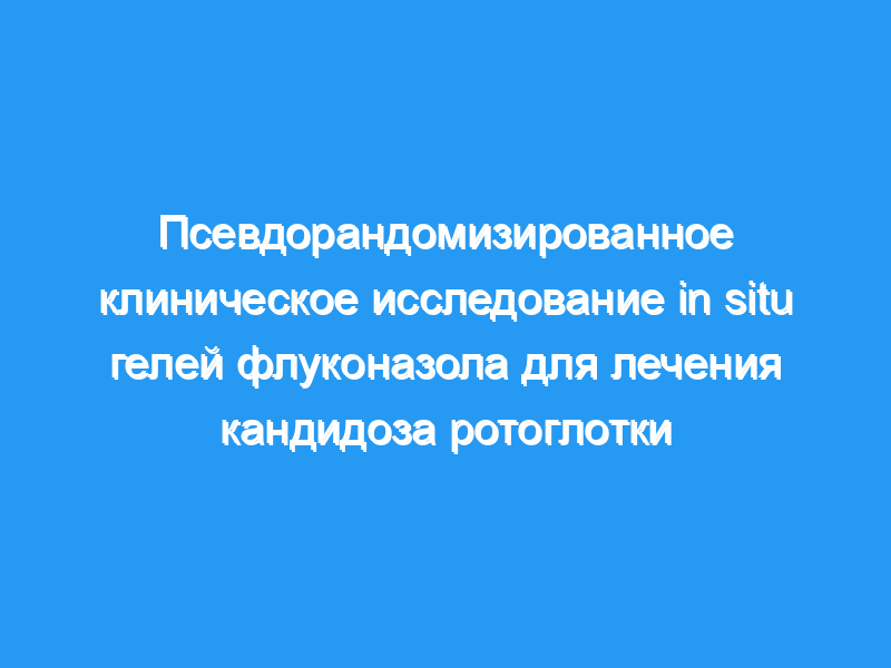 Гелевая форма флуконазола in situ хорошо переносится без серьезных побочных реакций и представляет собой лучшую альтернативу таблетированной форме при лечении кандидоза ротоглотки. Пробная регистрация: Текущие контролируемые маршруты ISRCTN90634047.