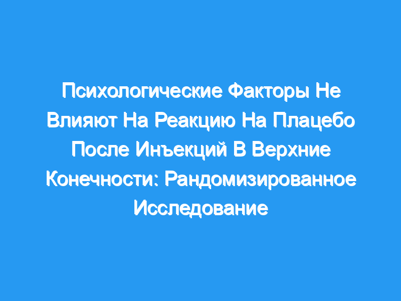 Исследования того, как психологические факторы влияют на эффект плацебо, показали противоречивые результаты в экспериментальных условиях. Пессимисты с большей вероятностью испытают эффект ноцебо (почувствуют себя хуже после инертного вмешательства), тогда как другие исследования показывают, что пациенты с большим количеством симптомов депрессии или тревоги или большим невротизмом лучше реагируют на плацебо. Это важно, поскольку преимущества лечения усиливаются эффектами плацебо, и оптимальное использование этого феномена может улучшить клинические результаты. Вопросы/цели: (1) Какие психологические факторы связаны с уменьшением величины ограничений (Инвалидность руки, плеча и кисти [оценка DASH]) и интенсивности боли (визуальная аналоговая шкала [ВАШ] для боли) после инъекций плацебо для лечения болезненных нетравматических состояний верхних конечностей? (2) Какие психологические факторы связаны с достижением минимальной клинически значимой разницы (MCID) в инвалидности и интенсивности боли?