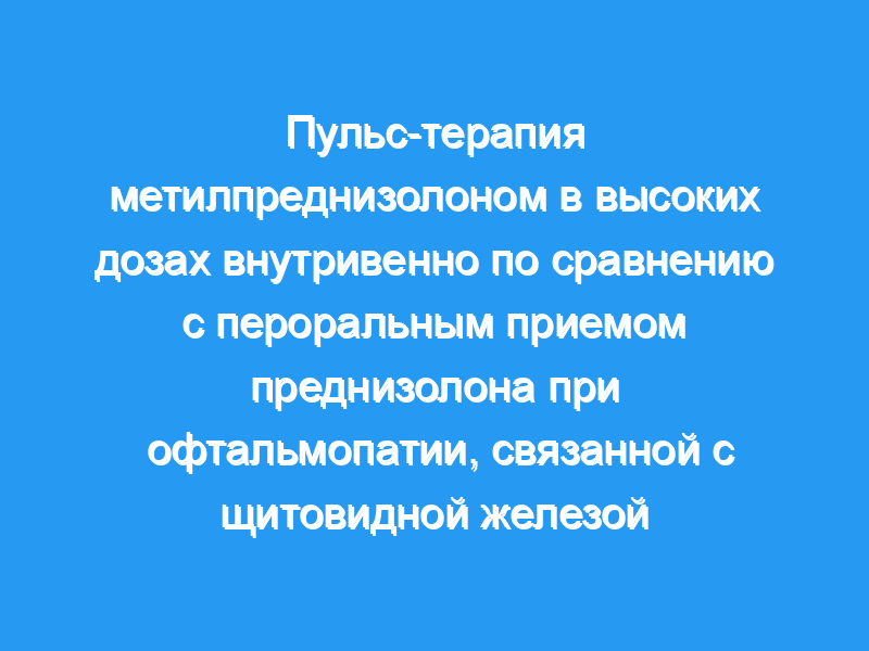 Наши данные свидетельствуют о том, что внутривенная пульс-терапия метилпреднизолоном и пероральный прием преднизолона одинаково эффективны в качестве начального лечения офтальмопатии, связанной с щитовидной железой, при которой диплопия, проптоз и беспокоят признаки воспаления мягких тканей. Когда требуется дополнительное лечение, внутривенная пульс-терапия метилпреднизолоном может быть более эффективной, чем пероральный прием преднизолона. Однако ограничения исследования означали, что любое решение о назначении дополнительного лечения после первоначальной терапии принималось на клинических основаниях.