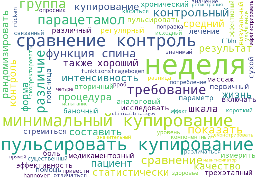 110 пациентов с cLBP были рандомизированы для регулярного пульсирующего купирования с 8 процедурами плюс парацетамол по требованию (n = 37), минимального купирования с 8 процедурами плюс парацетамол по требованию (n = 36) или контрольной группы с парацетамолом только по требованию (n = 37). Первичным результатом была интенсивность боли по визуальной аналоговой шкале (ВАШ, 0-100 мм) через 4 недели, вторичный параметр результата включал интенсивность боли по ВАШ через 12 недель, функцию спины, измеренную с помощью “Funktionsfragebogen Hannover Rücken” (FFbH-R) и опросника качества жизни, связанного со здоровьем, Короткая форма 36 (SF-36) через 4 и 12 недель.