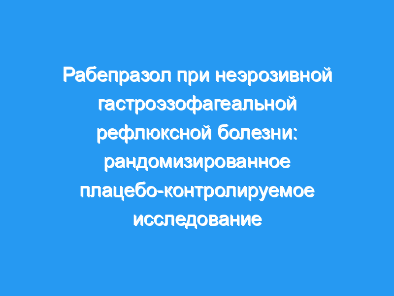 Это плацебо-контролируемое двойное В слепом исследовании приняли участие 203 мужчины и женщины с умеренно выраженными симптомами ГЭРБ. После 2-недельного однократного слепого плацебо-тестирования пациенты были рандомизированы для приема 10 мг или 20 мг рабепразола или плацебо один раз в день в течение 4 недель.